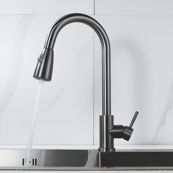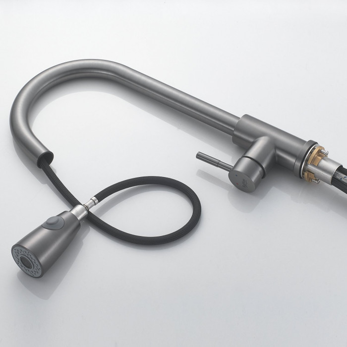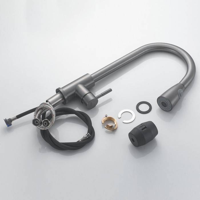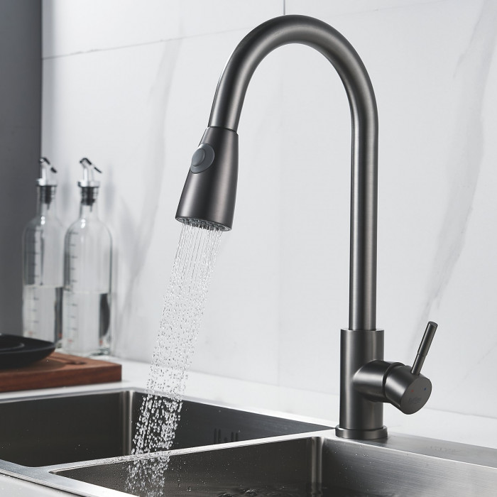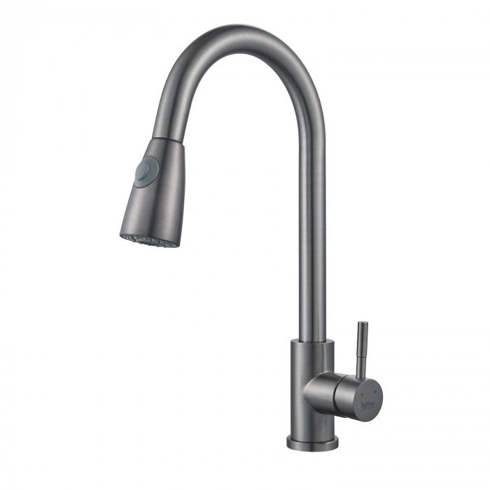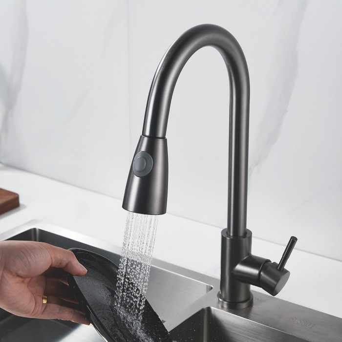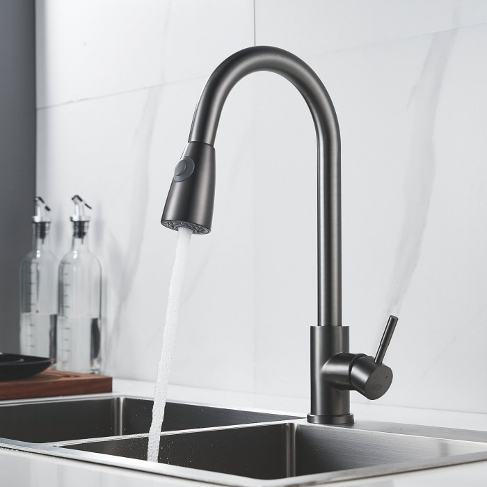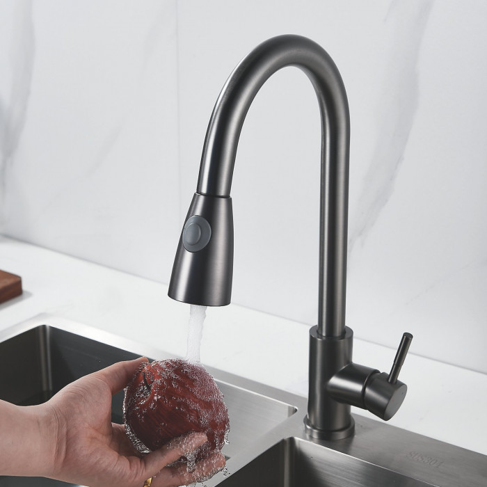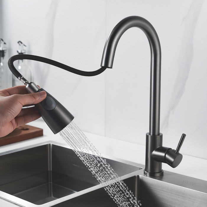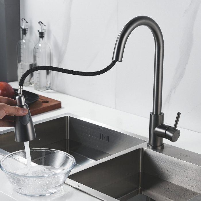 Смеситель для кухни с выдвижным изливом Raffine F213T, оружейная сталь