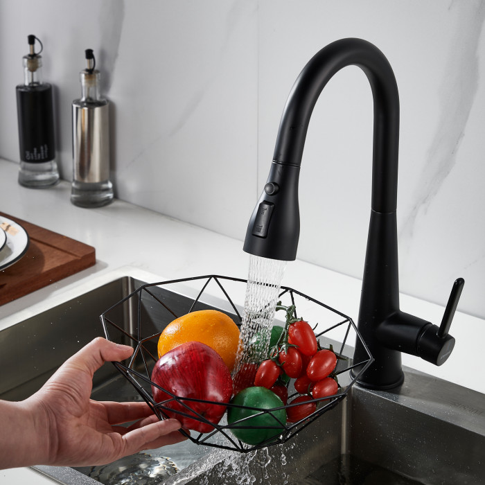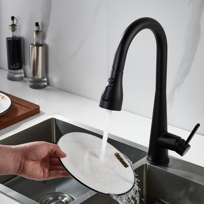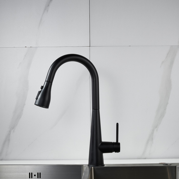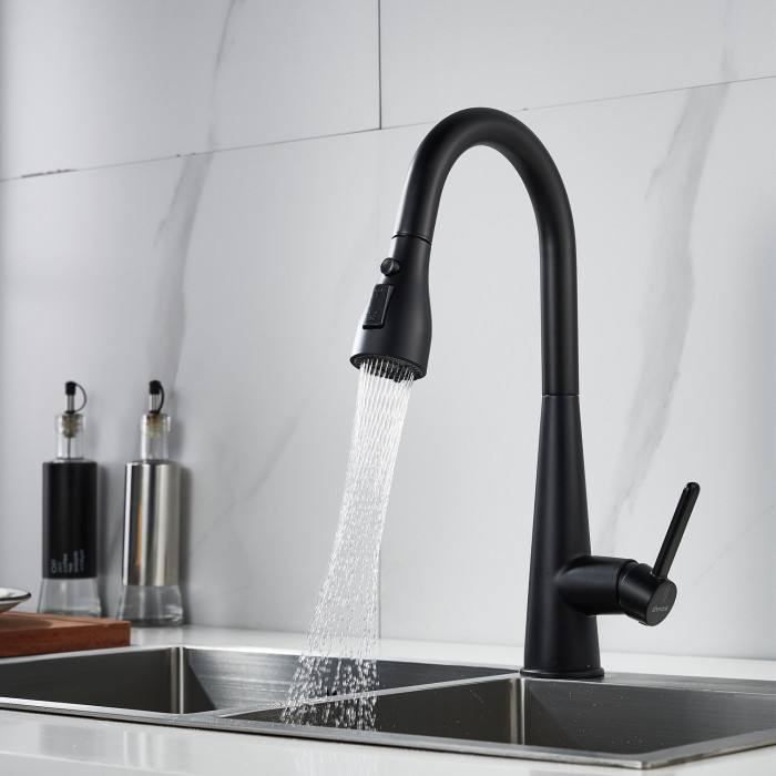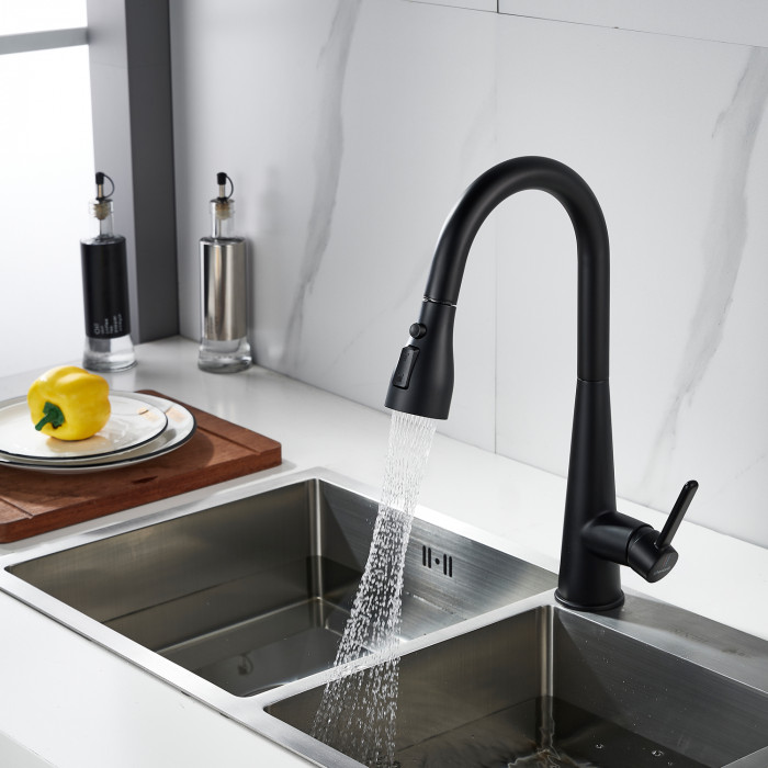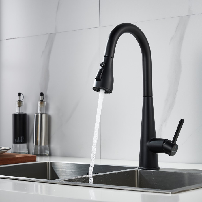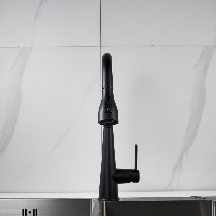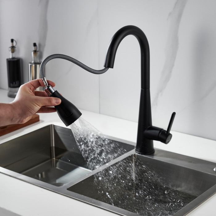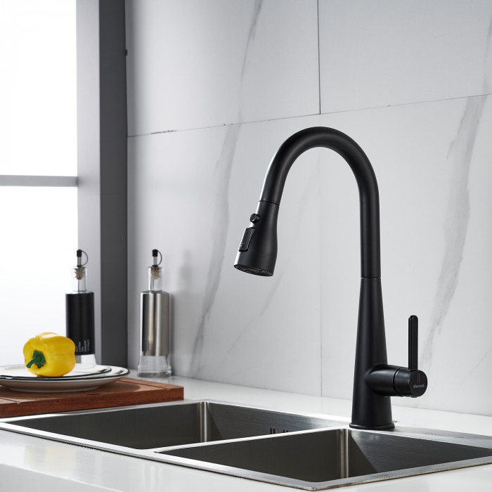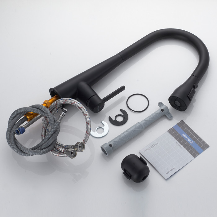 Смеситель для кухни с выдвижным изливом Shevanik S363H, черный
