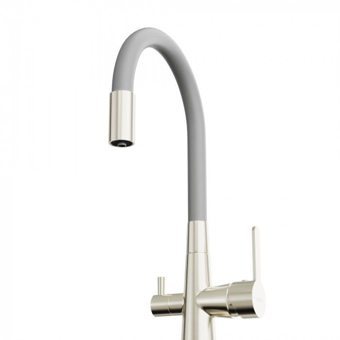 Гибкий излив в сером цвете – это не просто стиль, но и символ современной элегантности. Регулируемый угол наклона делает использование этого смесителя настоящим удовольствием. Готовьте и мойте с легкостью, наслаждаясь безупречным дизайном вашей кухни.