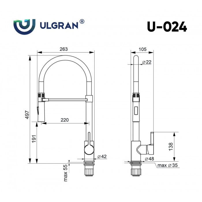 Смеситель для кухни Ulgran Classic ультра-белый U-024-341 Китай латунь современный на кухонную мойку 3 года Размер основной чаши, мм 1. Смеситель в фирменной коробке.