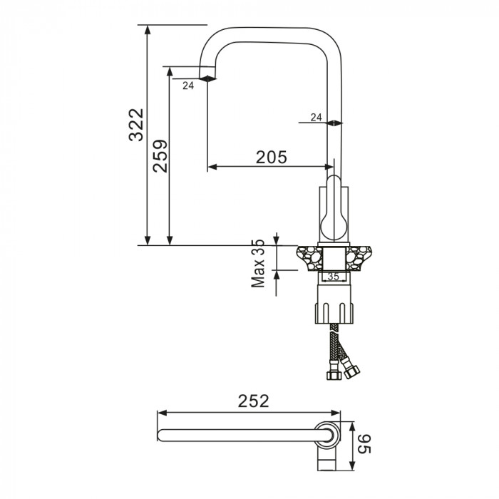 Размер чаши мойки впечатлил, очень удобно, исполнение отличное,цвет алюметаллик подошёл нам идеально, заказала такой же смеситель