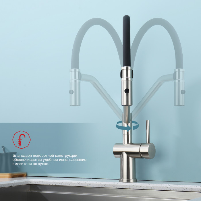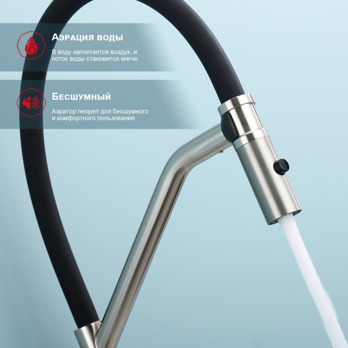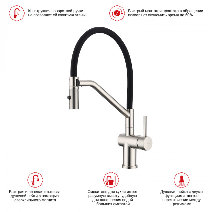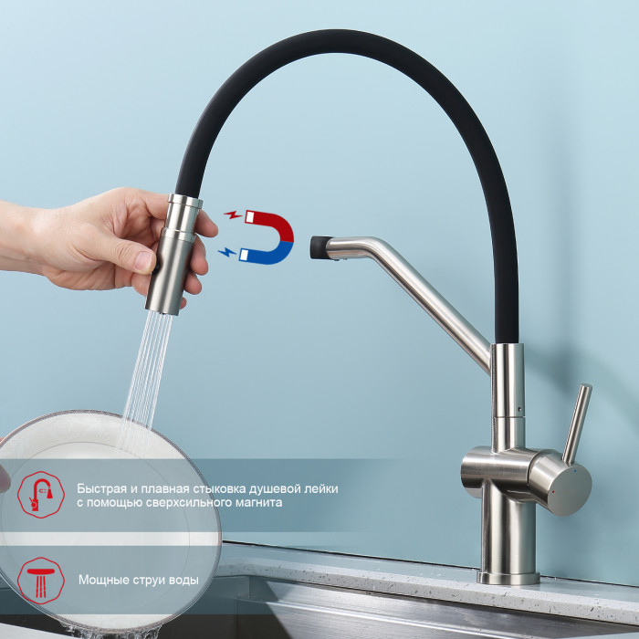 • Излив: гибкий, поворотный, навесной на магните