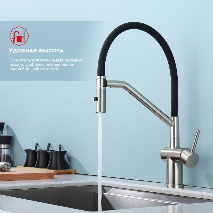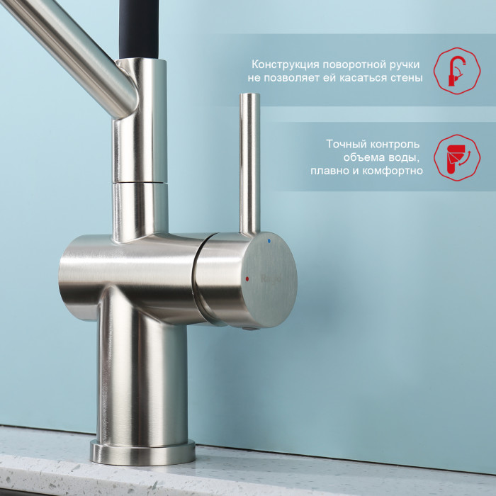 Смеситель Raglo для кухни со съемным гибким изливом, с магнитным фиксатором излива R86.41.05 сатин Основные характеристики: