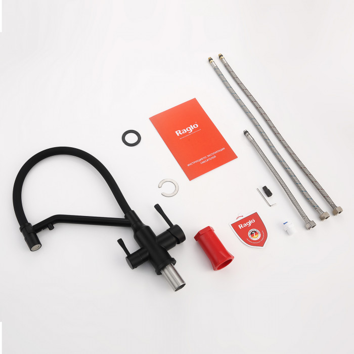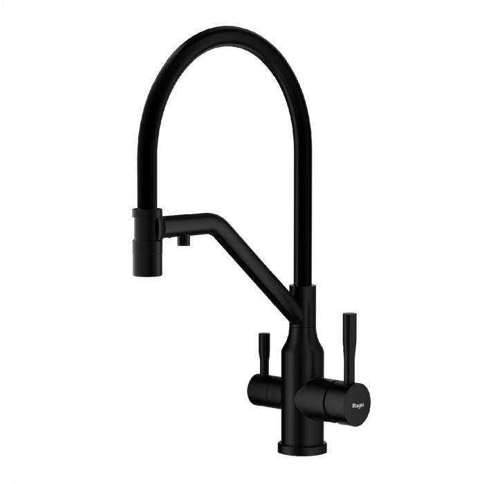 Смеситель Raglo для кухни со съемным гибким изливом, с магнитным фиксатором излива, с подключением фильтра питьевой воды R81.62.06 черный