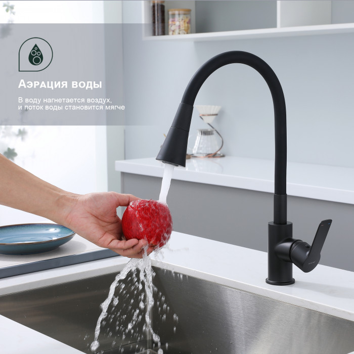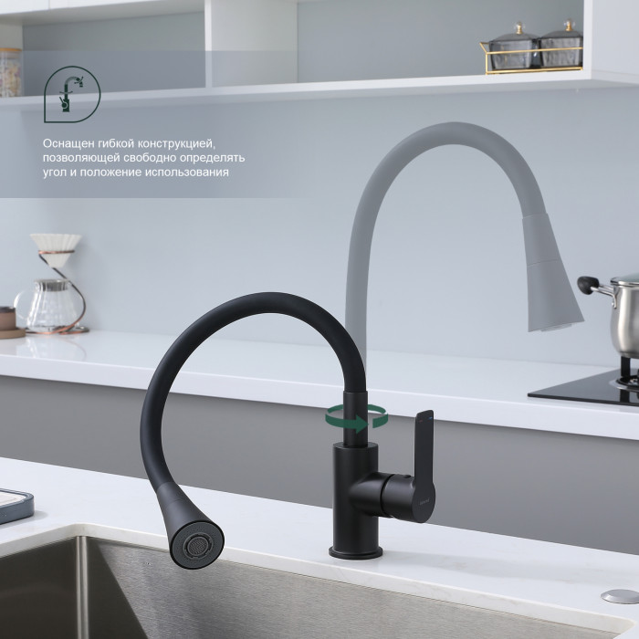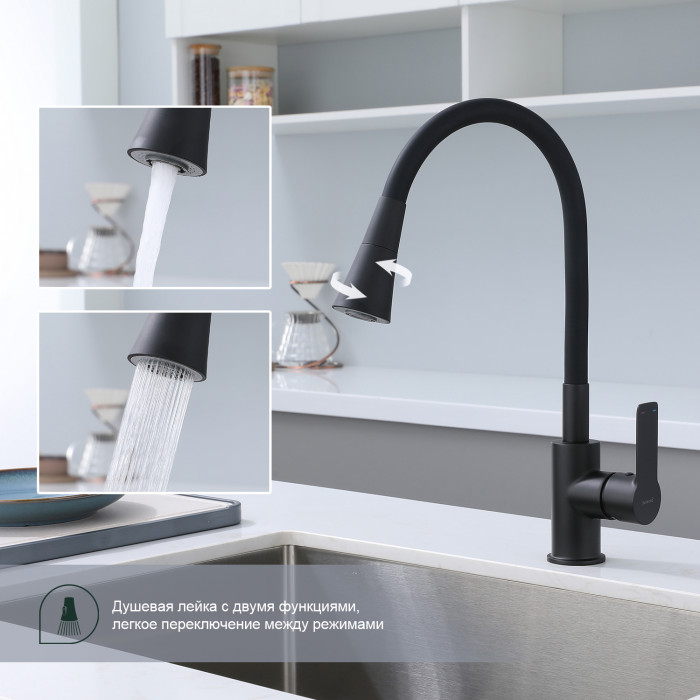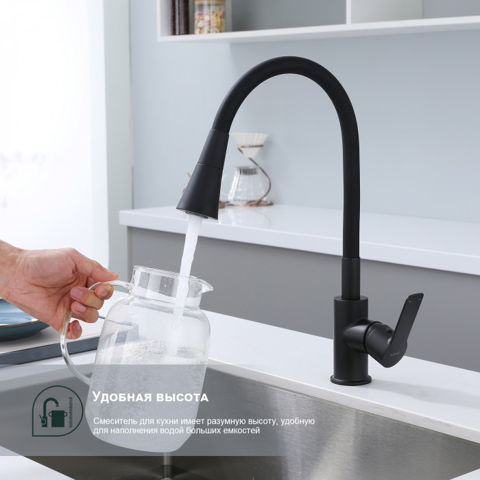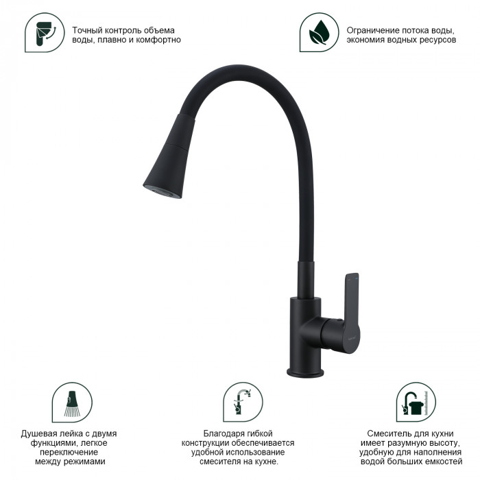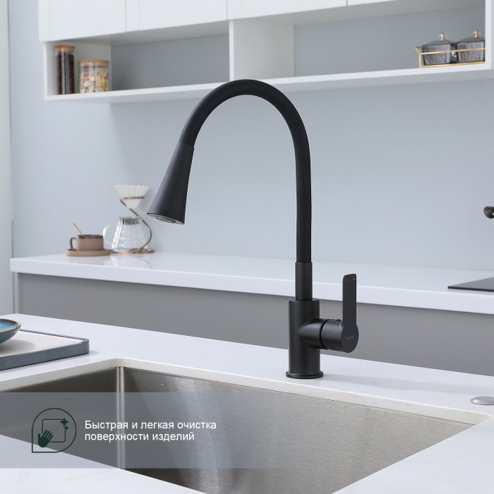 Смеситель Splenka для кухни с гибким изливом S06.43.06 черный Основные характеристики: