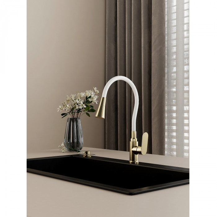 Смеситель Splenka для кухни с гибким изливом S41.43.03 золотой сатин