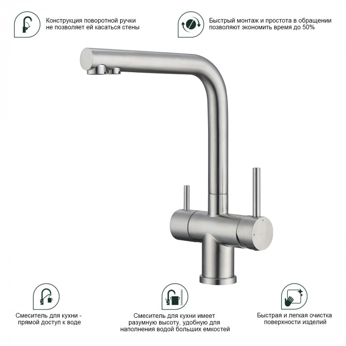 Смеситель Splenka для кухни с подключением к фильтру питьевой воды S70.61.05 сатин Основные характеристики: