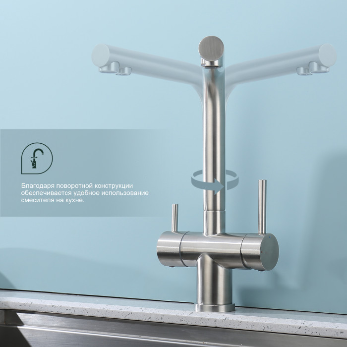 • Излив: биканальный,Совмещенный излив для питьевой воды;Поворотный;