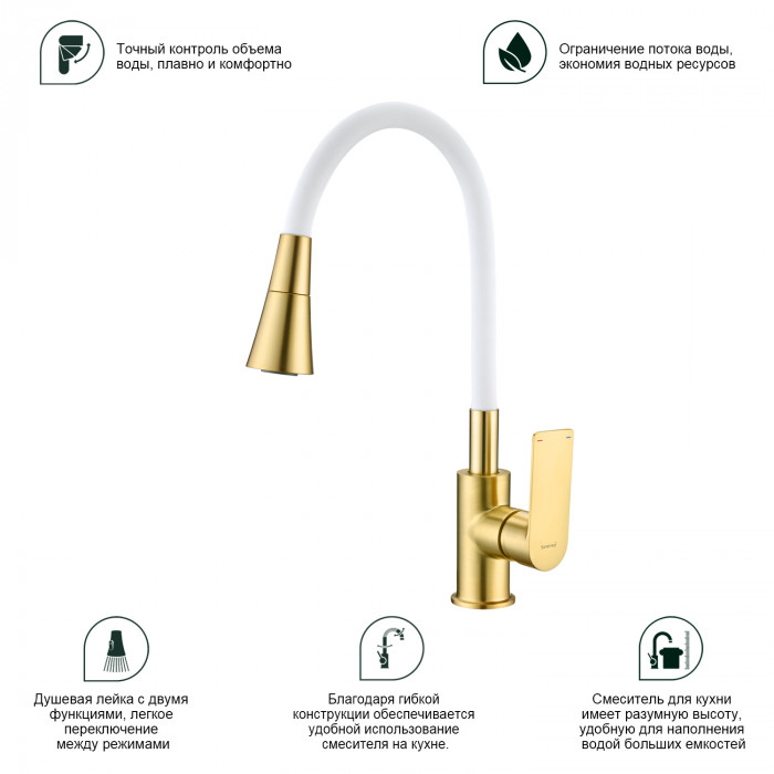 Смеситель Splenka для кухни S05.43.03 золотой сатин Основные характеристики:
