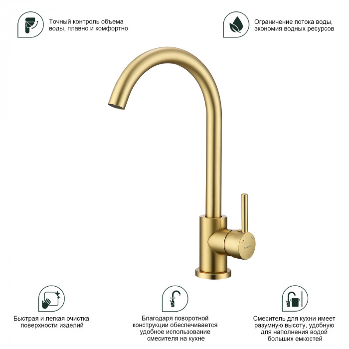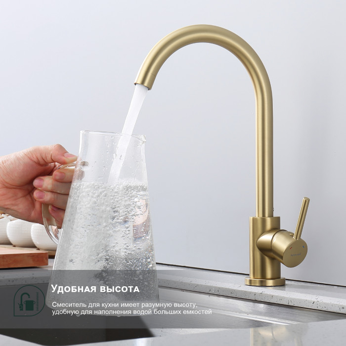 Смеситель Splenka для кухни S201.40.03 золотой сатин Основные характеристики: