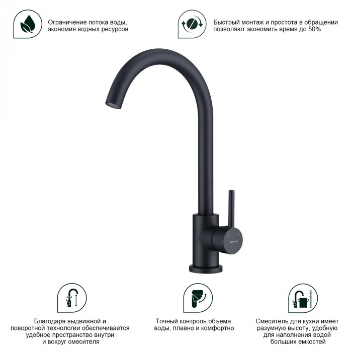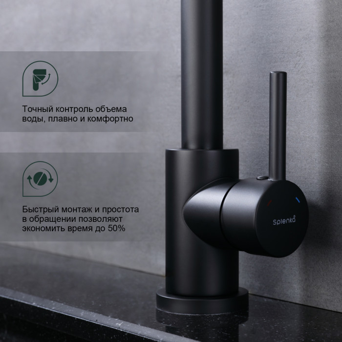 Смеситель Splenka для кухни S201.40.06 черный Основные характеристики:
