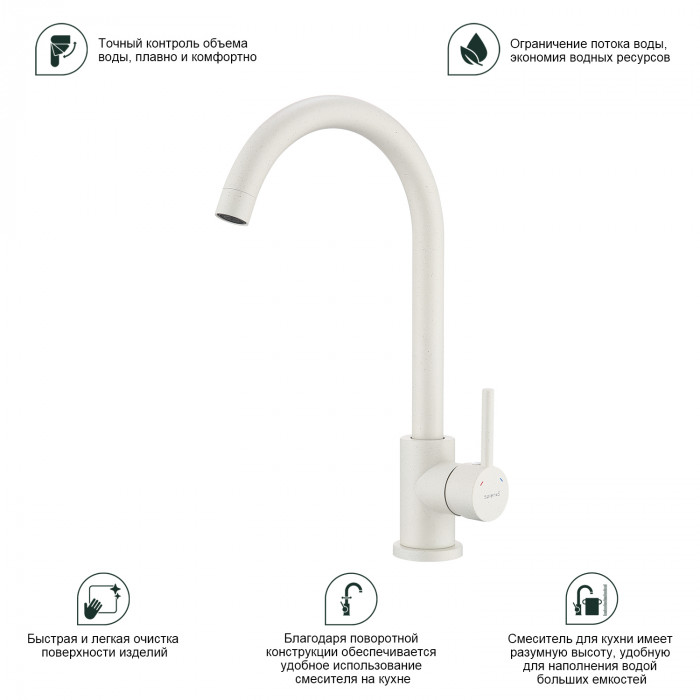 Смеситель Splenka для кухни S201.40.08 белый Основные характеристики: