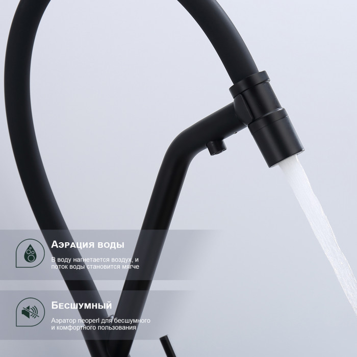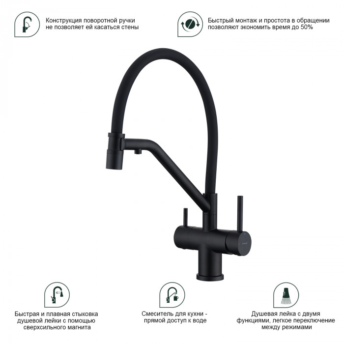 Смеситель Splenka для кухни со съемным гибким изливом, с магнитным фиксатором излива, с подключением фильтра питьевой воды S70.62.06 черный Основные характеристики: