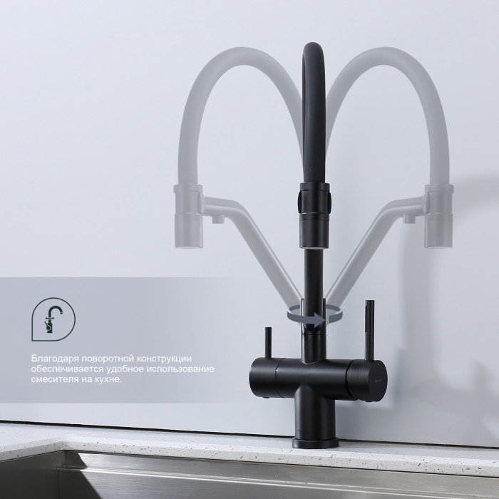 • Излив: гибкий, поворотный, навесной на магните,Совмещенный излив для питьевой воды