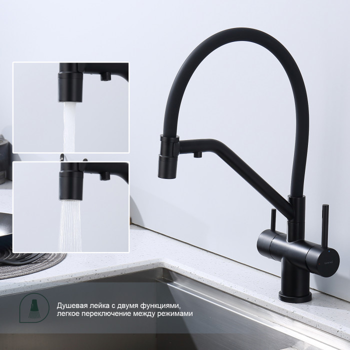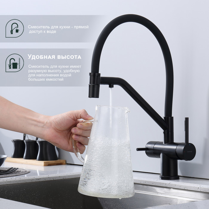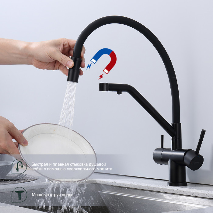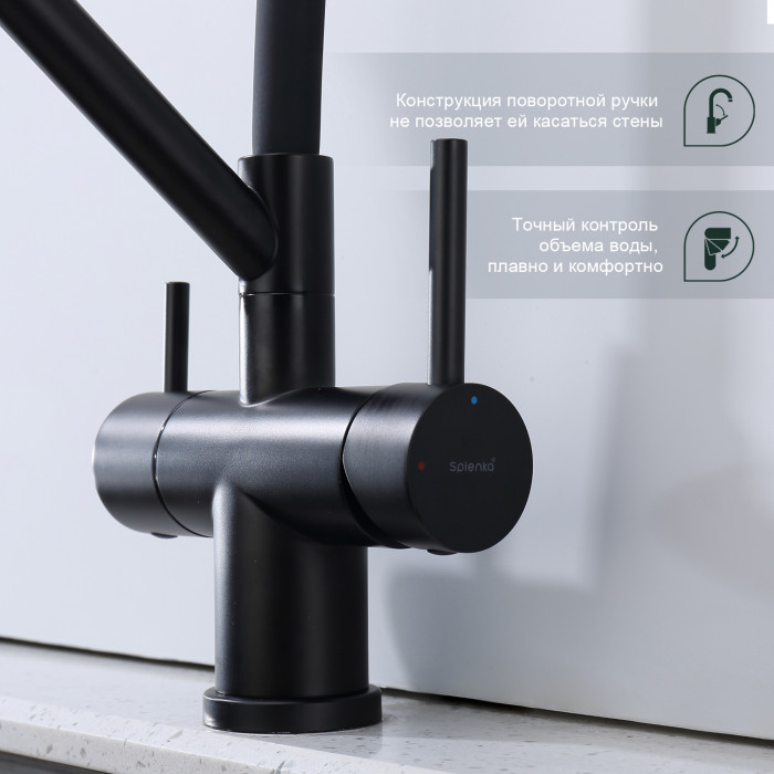 Смеситель Splenka для кухни со съемным гибким изливом, с магнитным фиксатором излива, с подключением фильтра питьевой воды S70.62.06 черный