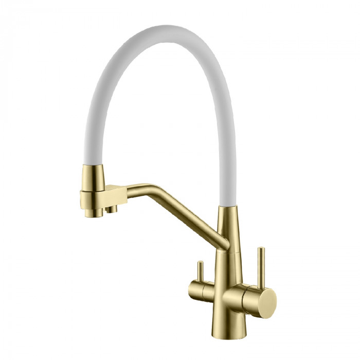 Смеситель Splenka для кухни со съемным гибким изливом, с магнитным фиксатором излива, с подключением фильтра питьевой воды S71.62.03 золотой сатин