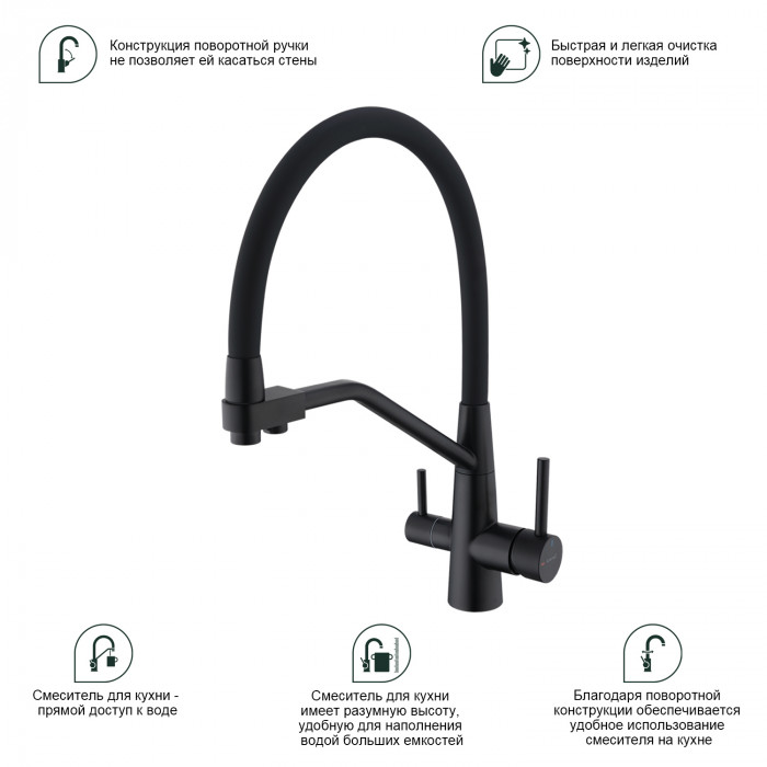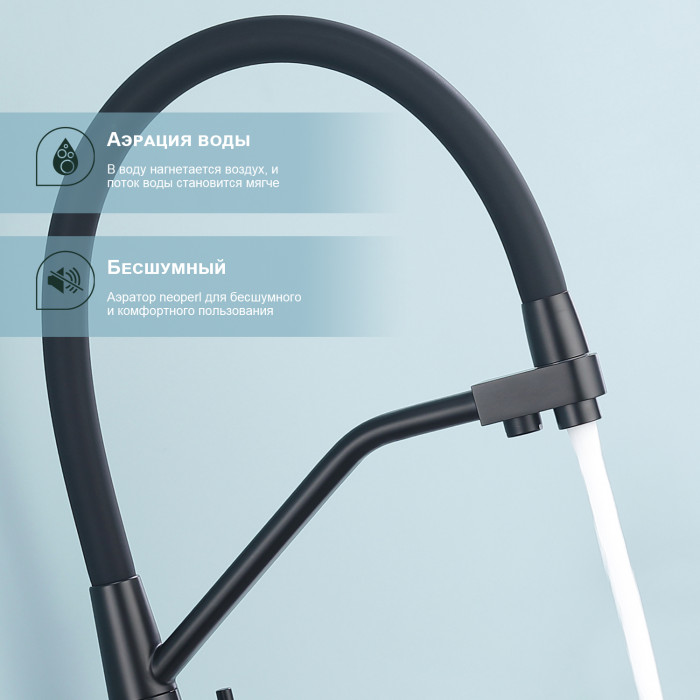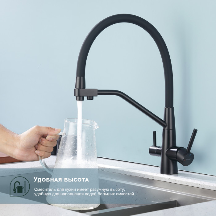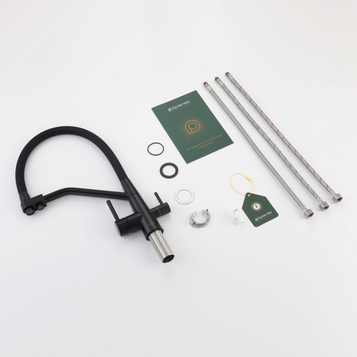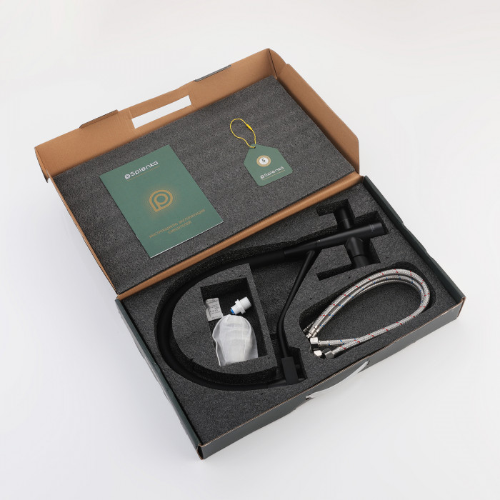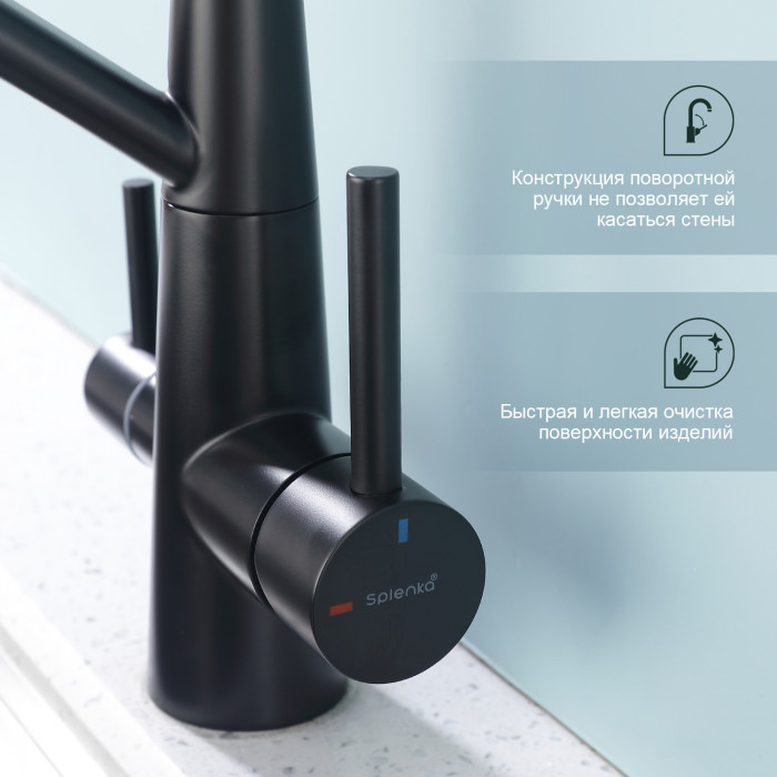 Смеситель Splenka для кухни со съемным гибким изливом, с магнитным фиксатором излива, с подключением фильтра питьевой воды S71.62.06 черный Основные характеристики: