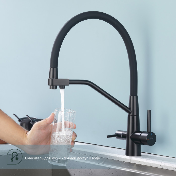 Смеситель Splenka для кухни со съемным гибким изливом, с магнитным фиксатором излива, с подключением фильтра питьевой воды S71.62.06 черный