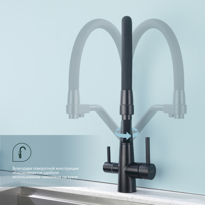 • Излив: гибкий, поворотный,Совмещенный излив для питьевой воды