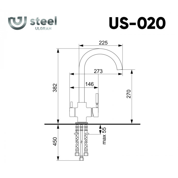 Смеситель ULGRAN Steel 020-002, цвет "черная брашированная сталь" US-020-002