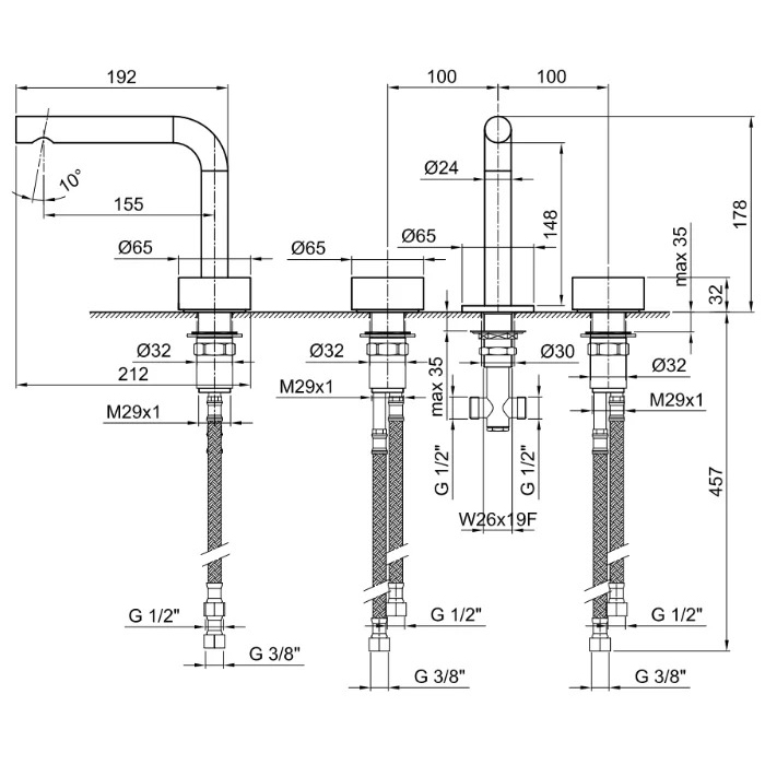 Смеситель для раковины Fantini AF/21 27 P6 A204WF Золото Fantini AF/21 Смеситель для раковины, 3 отв., без донного клапана, излив 155мм, цвет: Matt British Gold PVD