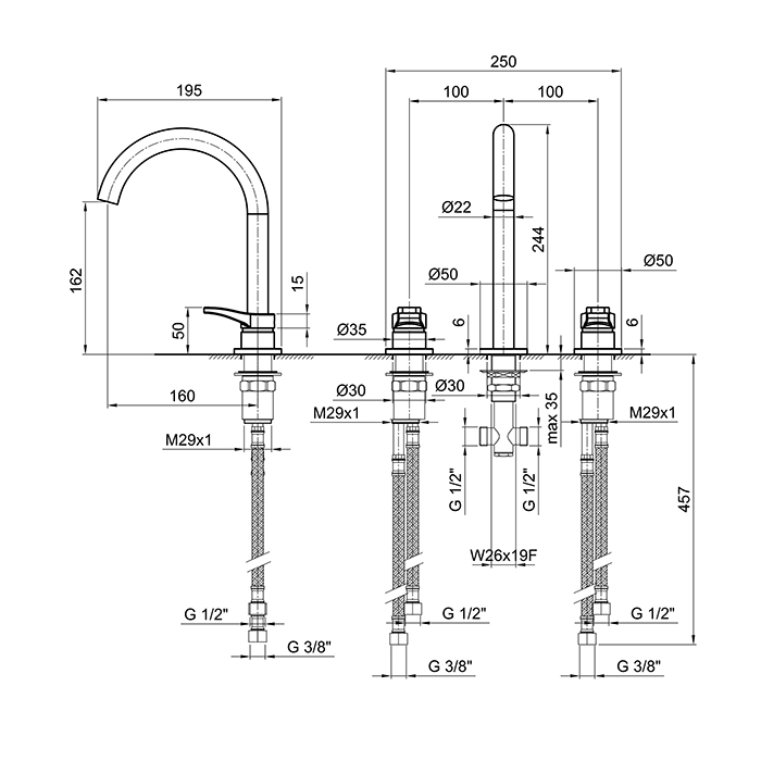 Смеситель для раковины Fantini AL/23 26 02 B204WF Хром Fantini AL/23 Смеситель для раковины, 3 отв., без донного клапана, излив 160мм, цвет: хром