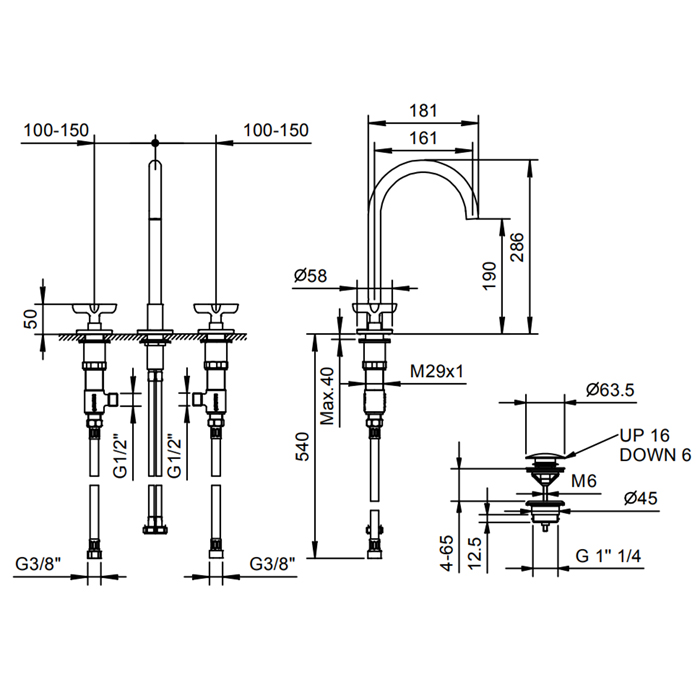 Смеситель для раковины Fantini Icona Classic 53 02 R007 Хром Fantini Icona Classic Смеситель для раковины, 3 отв., с нажимн. донным клапаном, излив 160мм, цвет: хром