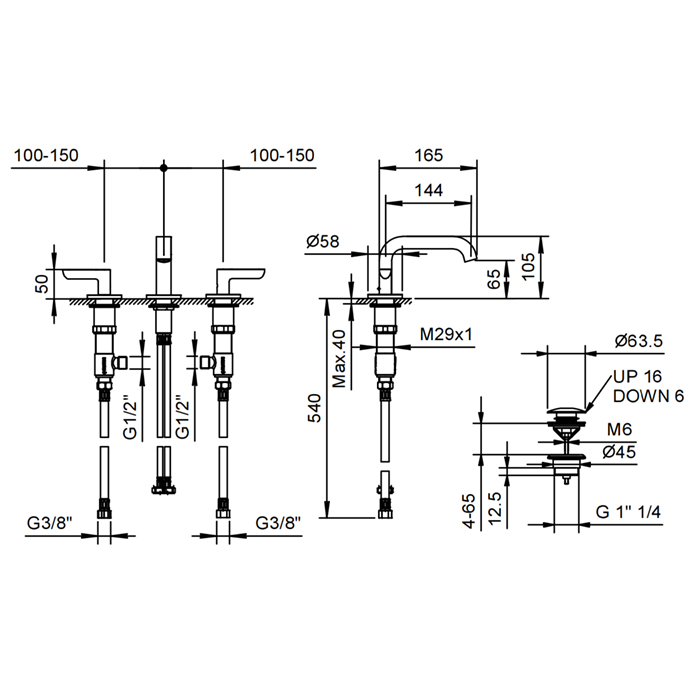 Смеситель для раковины Fantini Icona Deco 53 02 R104 Хром Fantini Icona Deco Смеситель для раковины, 3 отв., с нажимн. донным клапаном, излив 145мм, цвет: хром