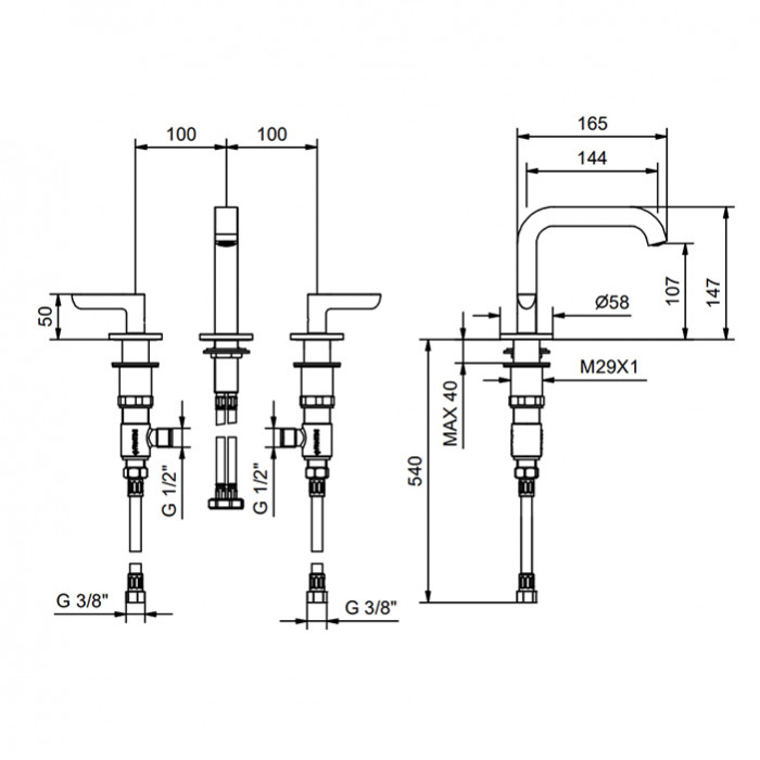 Смеситель для раковины Fantini Icona Deco 53 95 R106W Никель Fantini Icona Deco Смеситель для раковины, 3 отв., без донного клапана, излив 145мм, цвет: никель