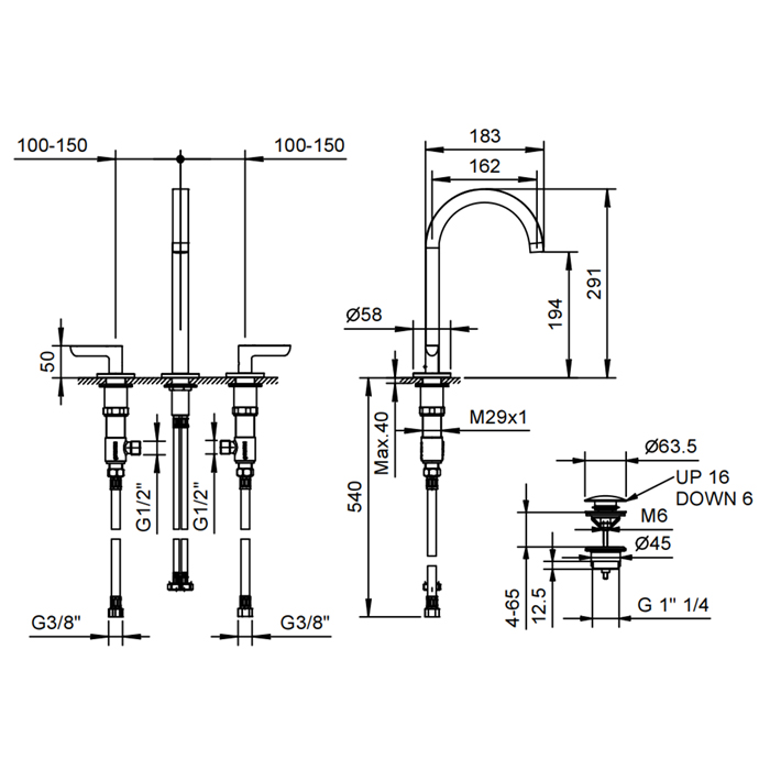 Смеситель для раковины Fantini Icona Deco 53 P5 R107 Gun metal Fantini Icona Deco Смеситель для раковины, 3 отв., с нажимн. донным клапаном, излив 160мм, цвет: оружейная сталь