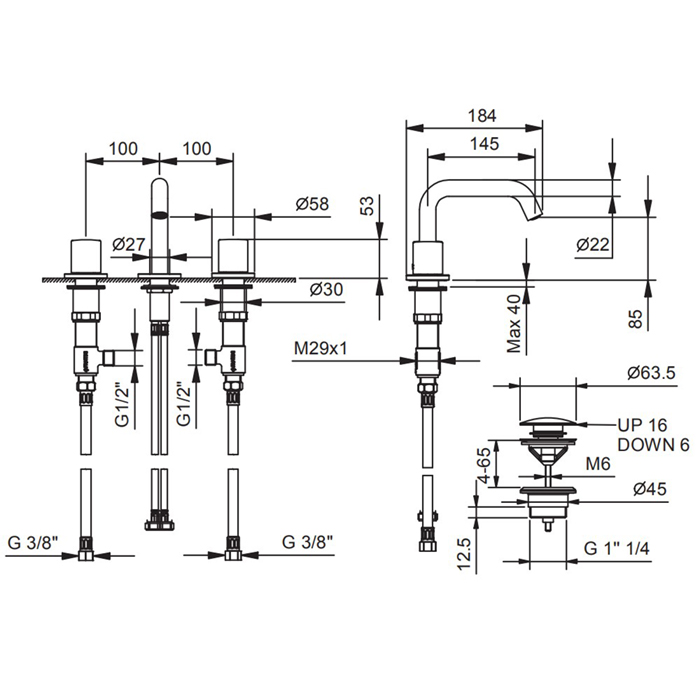 Смеситель для раковины Fantini Lame 24 02 M304 Хром Fantini Lame Смеситель для раковины, 3 отв., с нажимн. донным клапаном, излив 145мм, цвет: хром