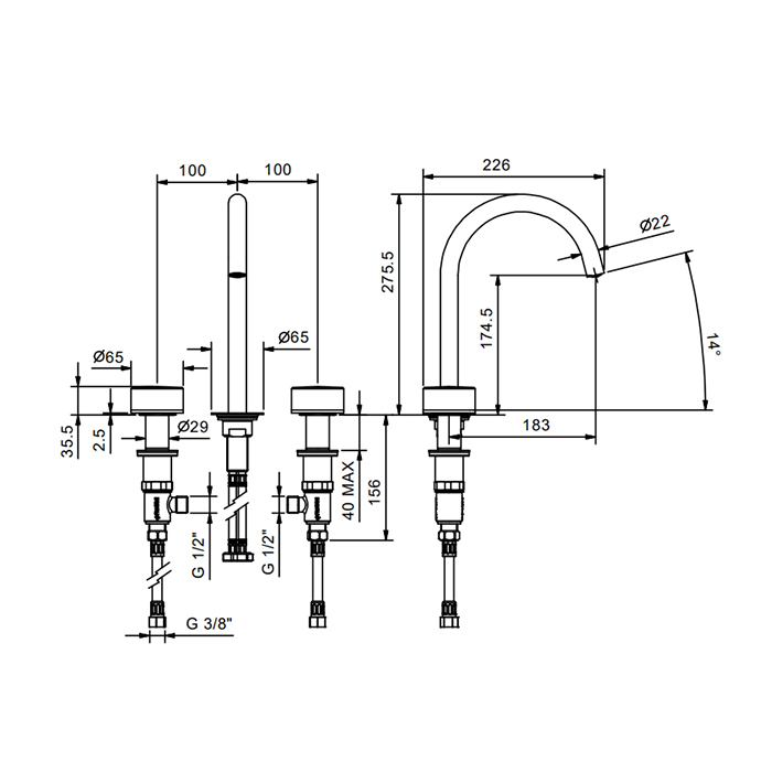Смеситель для раковины Fantini Nice 65 02 S104SW Хром Fantini Nice Смеситель для раковины, 3 отв., с нажимн. без донного клапана, излив 183мм, цвет: хром