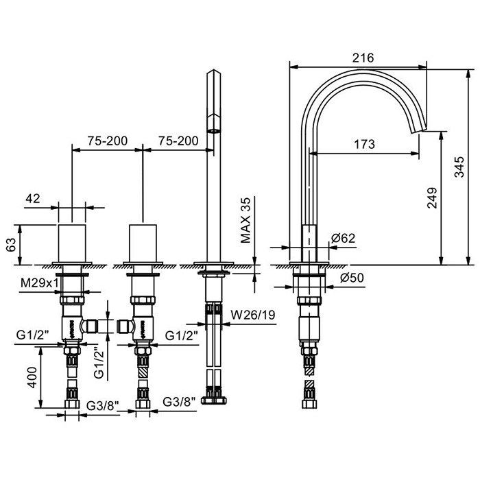 Смеситель для раковины Fantini Venezia In 29 P6 N504S Золото Fantini Venezia In Смеситель для раковины, 3 отв., с нажимн. донным клапаном, излив 150мм, цвет: Matt British Gold PVD