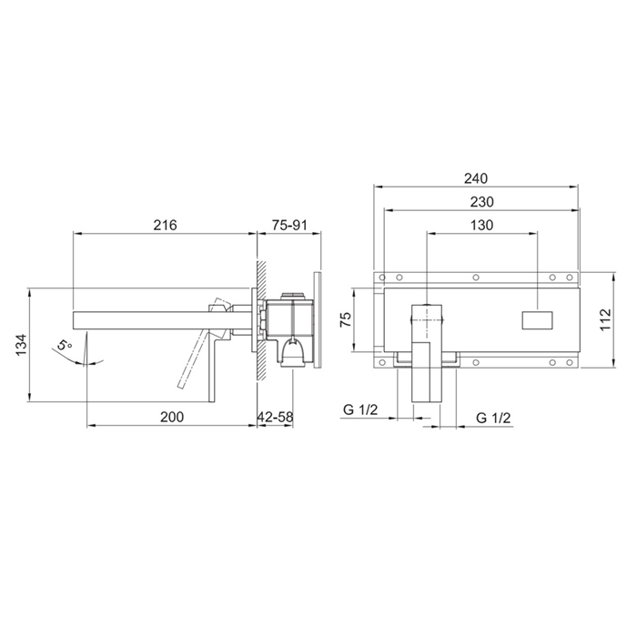 Смеситель для раковины Fantini AR/38 38 02 E213SB Хром Fantini AR/38 Смеситель для раковины, встраиваемый, на 2 отв, без донного клапана, излив 200мм (наружняя часть), цвет: хром
