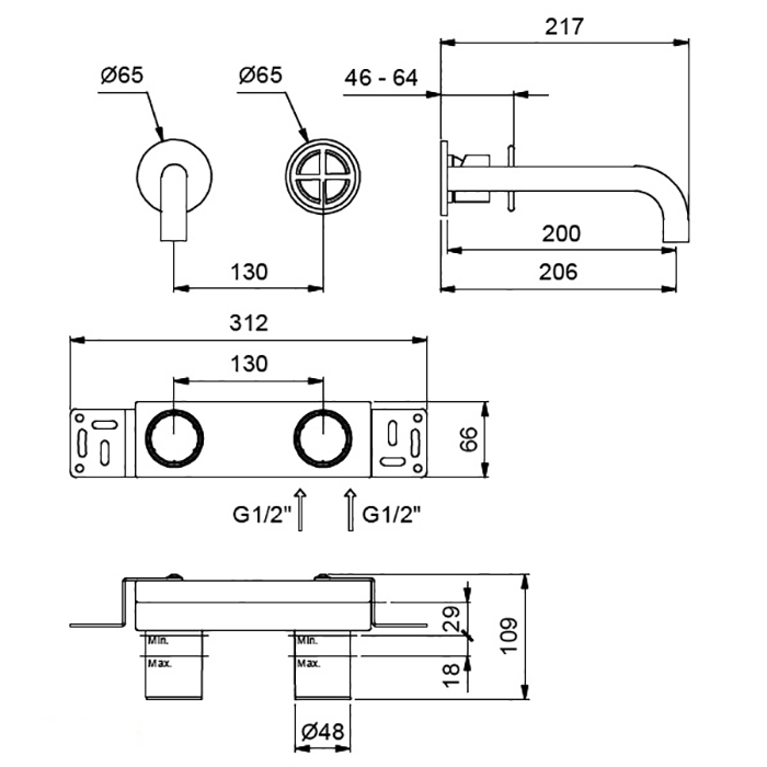 Смеситель для раковины Fantini Fontane Bianche 47 P5 P113B Gun metal Fantini Fontane Bianche Смеситель для раковины, встраиваемый, на 2 отв., без донного клапана, излив 200мм, (наружняя часть), цвет: Matt Gun Metal PVD