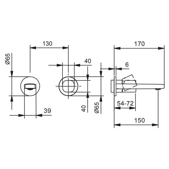 Смеситель для раковины Fantini Lame 24 02 M009B Хром Fantini Lame Смеситель для раковины, встраиваемый, на 2 отв, без донного клапана, излив 150мм (наружняя часть), цвет: хром