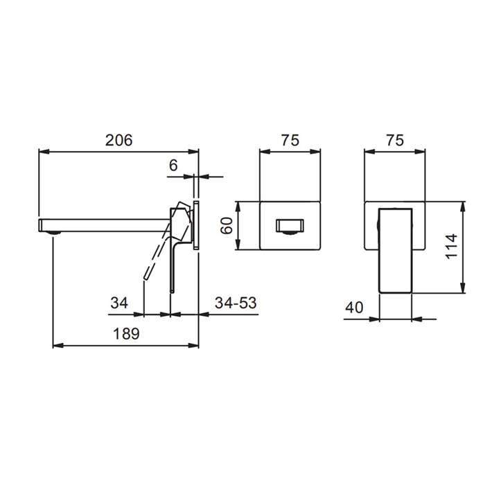 Смеситель для раковины Fantini Mint 34 02 F811B Хром Fantini Mint Смеситель для раковины, встраиваемый, на 2 отв, без донного клапана, излив 190мм (наружняя часть), цвет: хром