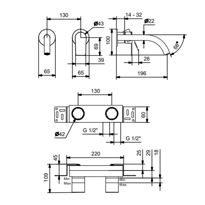 Смеситель для раковины Fantini Myo 61 02 V611B Хром Fantini MYO Смесители из стены для раковины наружная часть, цвет: хром
