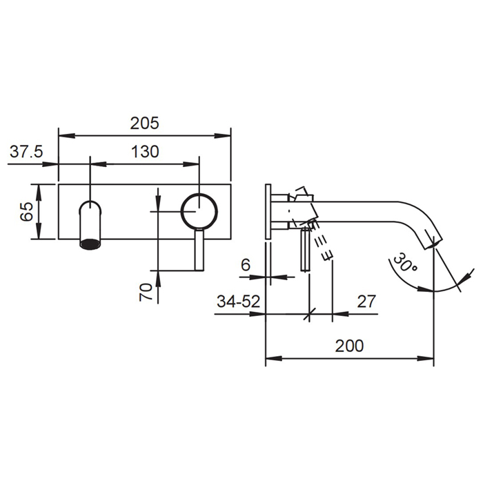 Смеситель для раковины Fantini Nostromo 50 02 E813B Хром Fantini Nostromo Смеситель для раковины, встраиваемый, на 2 отв, без донного клапана, излив 200мм (наружняя часть), цвет: хром