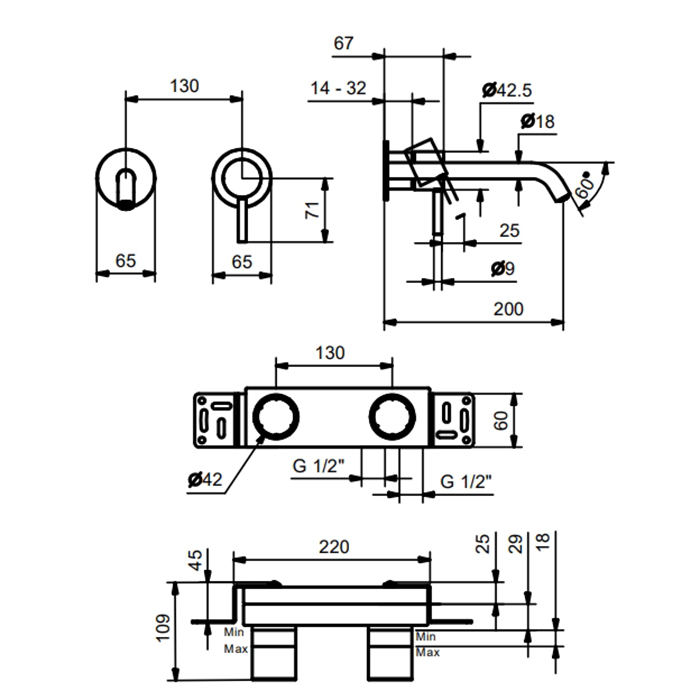 Смеситель для раковины Fantini Nostromo 50 93 G913B Матовая сталь FANTINI NOSTROMO SMALL Смесители для раковины настенный, однорычажный, внешняя часть, отделка Матовая натуральная сталь