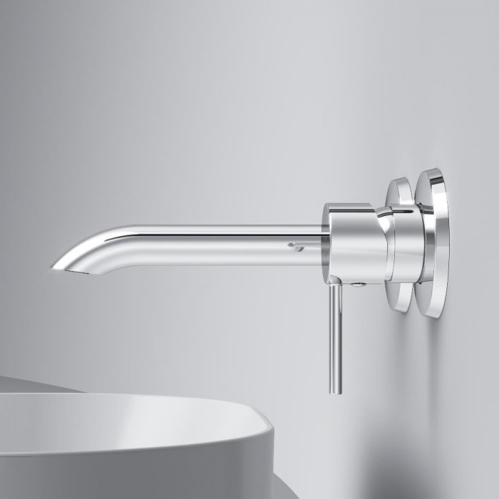 Характерный излив — ключевая особенность коллекции. Выверенный изгиб в сочетании с чистой горизонталью излива подчёркивает архитектурную чистоту формы. Такое решение требует высокой точности производства и формирует цельный, визуально безупречный силуэт. А монтируемая в стену конструкция – это ответ на меняющиеся потребности клиентов, которые ищут простые и стильные решения для ванной комнаты.