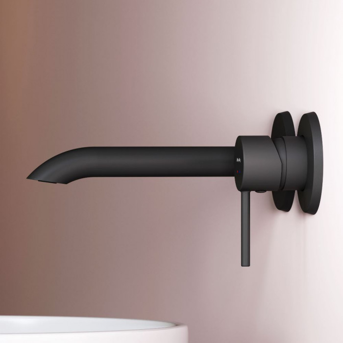 Смеситель для раковины монтируемый в стену AM.PM Libre F6072622 Чёрный Матовое Германия Латунь, Zamak 3 Для раковины Внутренний (скрытый монтаж) Округлая AM.PM Soft Motion 35 мм керамический Однозахватный Смеситель, гибкая подводка, комплект крепежа, инструкция 5-6 л/мин Встраиваемый смеситель для раковины Libre — переосмысление современного минимализма в линейке AM.PM. Коллекция Libre объединяет мягкие плавные линии и чёткую геометрию, создавая ощущение лёгкости, простора и визуального баланса. Дизайн, разработанный совместно со всемирно известным агентством Brandis, Германия, не просто приковывает к себе внимание, а задает атмосферу всей ванной комнаты.