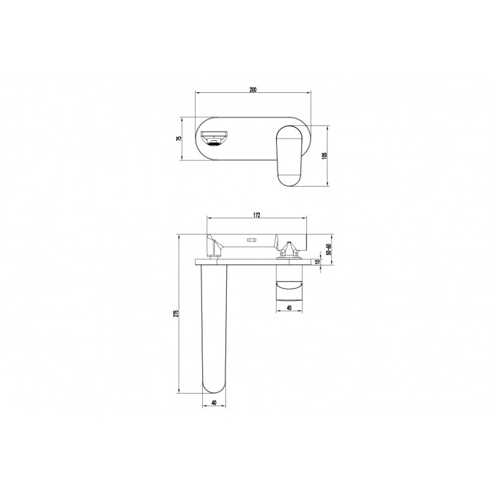 Смеситель для раковины НА СТЕНУ (ВСТРАИВАЕМЫЙ) Aquatek НИКА AQ1813BGM оружейная сталь AQ1813BGM НИКА смеситель для раковины настенный (внешняя и скрытая часть), оружейная сталь 36x8,5x23,5 1. Смеситель (внешняя и скрытая часть)