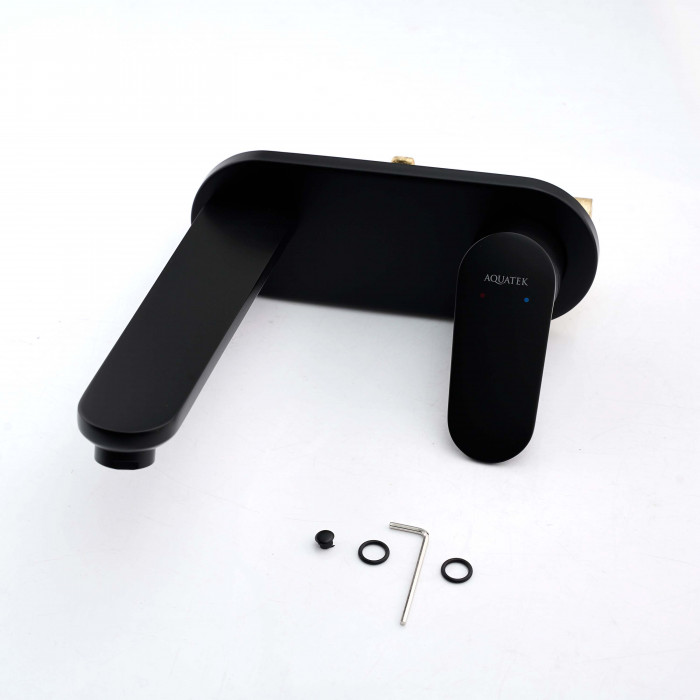 Смеситель для раковины НА СТЕНУ (ВСТРАИВАЕМЫЙ) Aquatek НИКА AQ1813MB черный матовый AQ1813MB НИКА смеситель для раковины настенный (внешняя и скрытая часть), матовый черный 36x8,5x23,5 1. Смеситель (внешняя и скрытая часть)