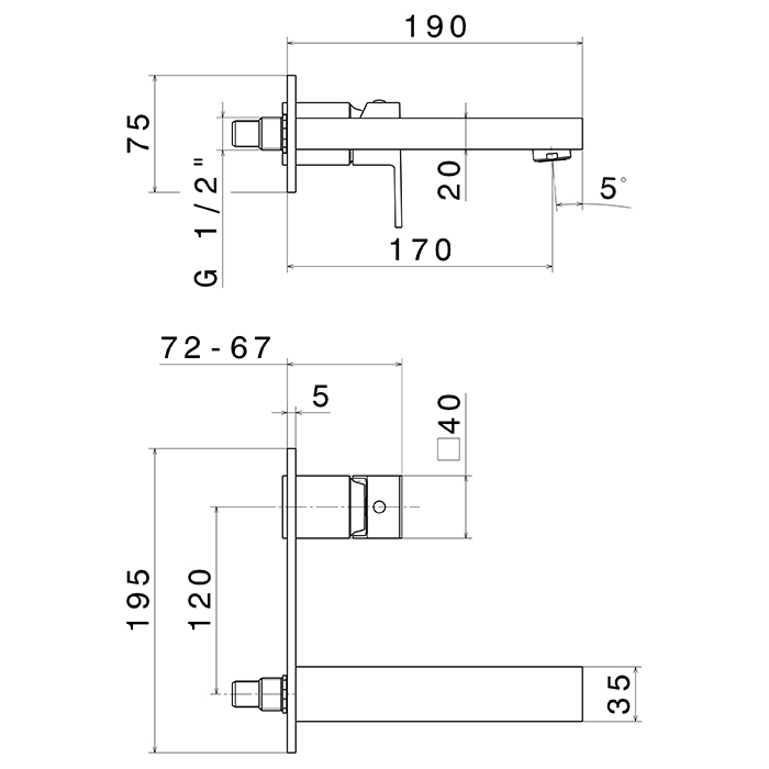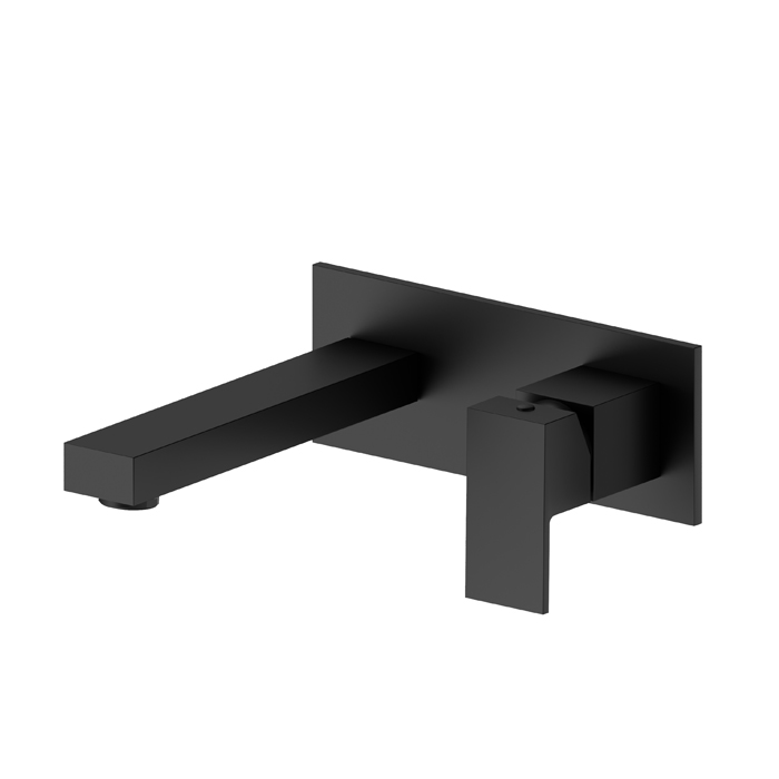 Смеситель для раковины Newform Ergo Q 66429E.01.093 Черный матовый Newform Ergo-Q Внешняя часть смесителя настеного монтажа для раковины с длинным изливом без донного клапана с накладной пластиной, цвет: черный матов