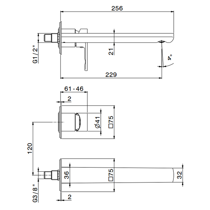 Смеситель для раковины Newform Haka 72032E.59.066 Нержавейка Newform Haka Внешняя часть смесителя для раковины из стены, излив 229 мм, без донного клапана, цвет: PVD brushed stainless steel