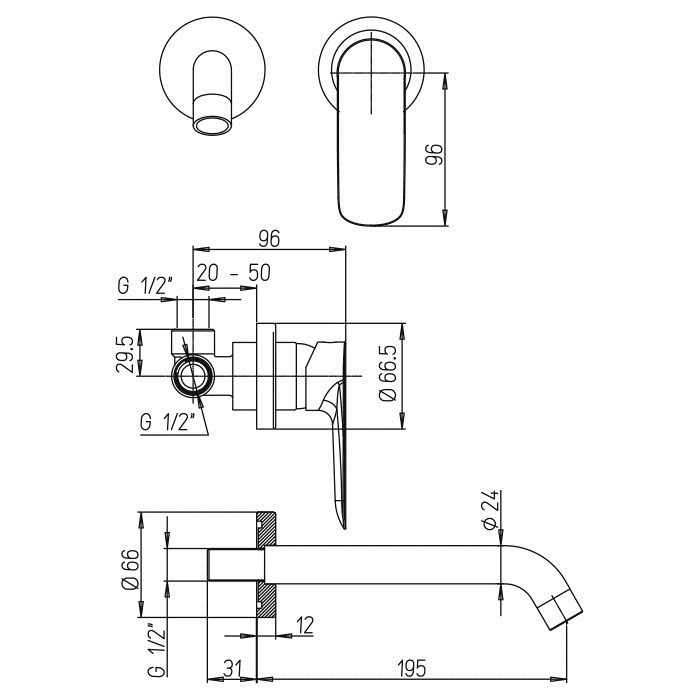 Смеситель для раковины встраиваемый, чёрный глянцевый PVD PAINI 09PQ208 встраиваемые смесители для раковины Италия