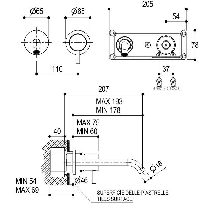 Ritmonio Diametro35 PR52AL202F34 Бронза Ritmonio Diametro35 S Смеситель встраиваемый однорычажный для раковины, внешняя часть, цвет: Brushed Dark Bronze