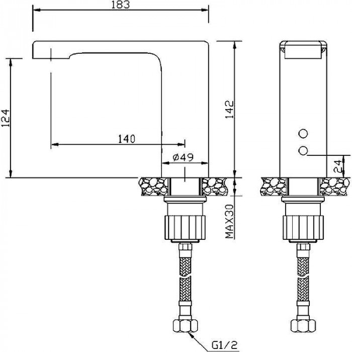 Автоматический кран для раковины или столешницы черный 07260.N, шт NOFER 07260.N хромированная латунь черный Испания Автоматический водопроводный кран для умывальника черного цвета. Установка на столешницу с автоматической системой активации через встроенный в нее инфракрасный датчик Работа от сети 220 В 50/60 Гц или от 4 батареек АА, обеспечивающих 6 В в случае сбоя питания. Расход 6 л / мин при давлении 3 бара Материал: хромированная латунь CW617N Размеры: 142 высота x 49 ширина x 183 глубина (мм)