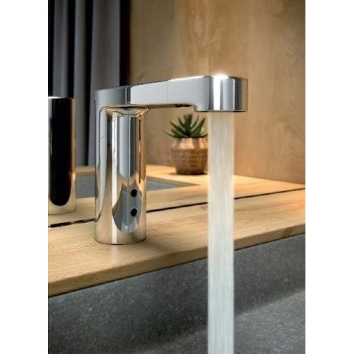 Автоматический смеситель для раковины или столешницы 07260M.B, шт NOFER 07260M.B хромированная латунь Глянцевый Испания Автоматический водопроводный кран для умывальника Установка на столешницу с автоматической системой активации через встроенный в нее инфракрасный датчик Работа от сети 220 В 50/60 Гц или от 4 батареек АА, обеспечивающих 6 В в случае сбоя питания. Расход 6 л / мин при давлении 3 бара Материал: хромированная латунь CW617N